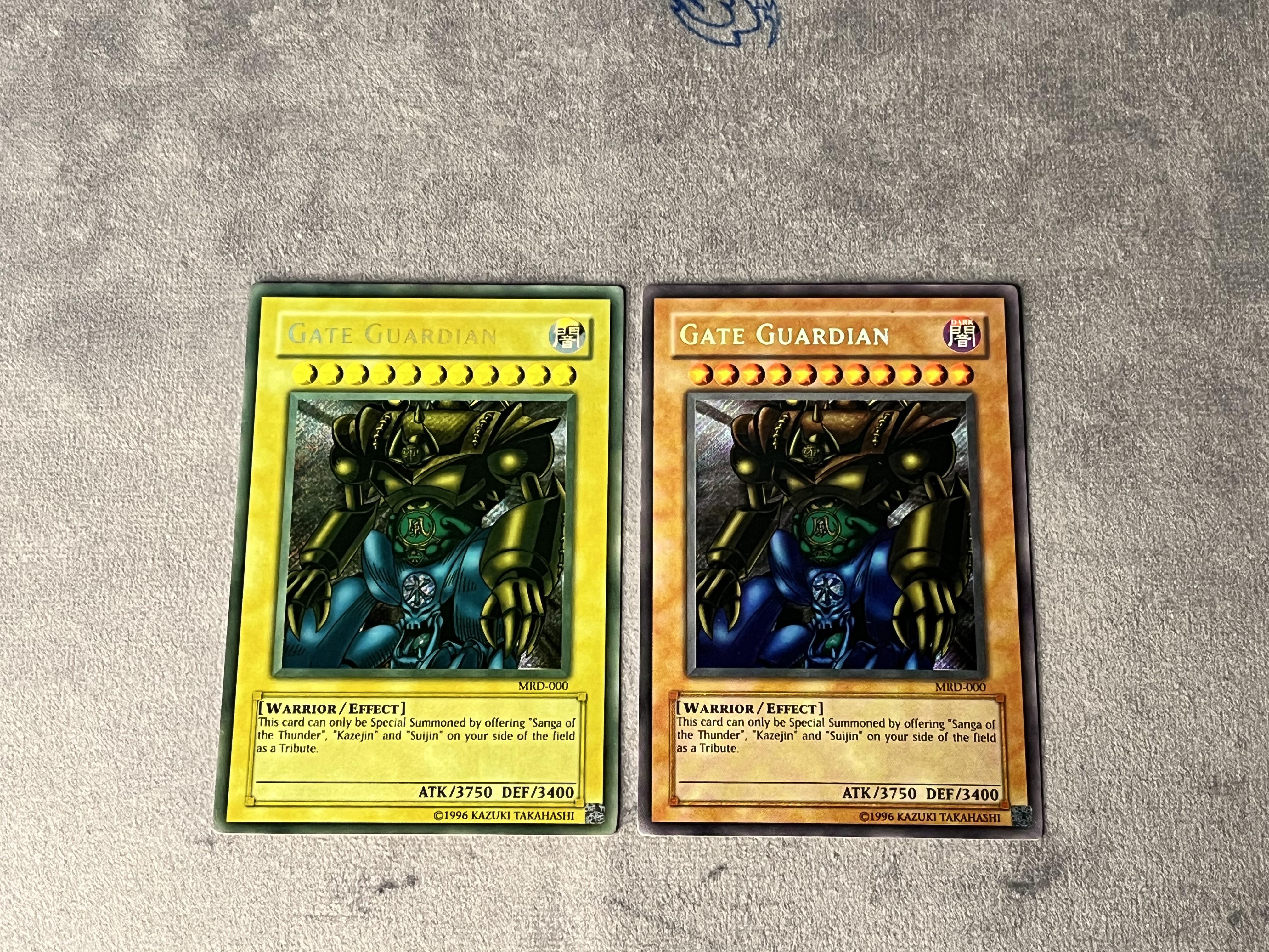 Comparison of a normal Gate Guardian card next to a faded ink error version