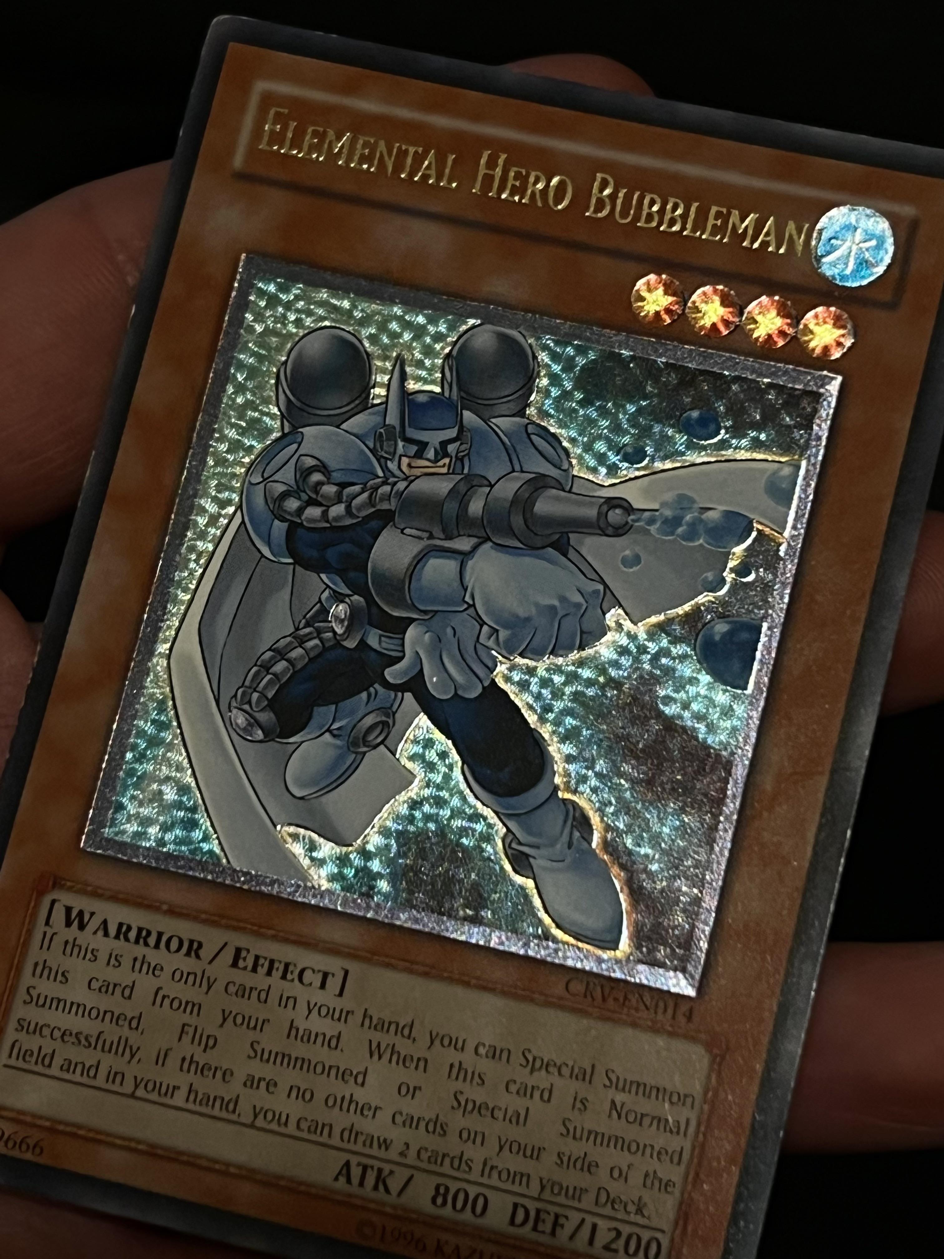 What it looks like: A highly sought-after rarity. The card name is gold foil like an Ultra Rare, but the artwork, Attribute icon, Level stars, and card borders all have an embossed, raised-relief texture you can physically feel with your finger. The foil has a tactile, three-dimensional quality rather than a flat holographic shine. Originally discontinued in 2015 and returned in 2024.